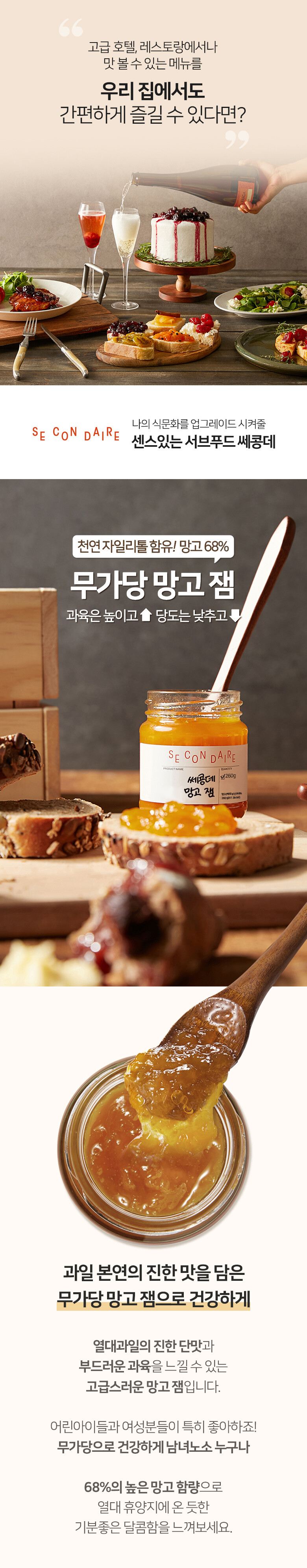 망고가 68%나 들어있답니다. 부드러운 망고의 풍미와 달콤한 맛이 그 어떤 요리와 곁들여도 돋보이죠. 달콤한 망고 과육을 그대로 떠먹는 것 같을 거예요.