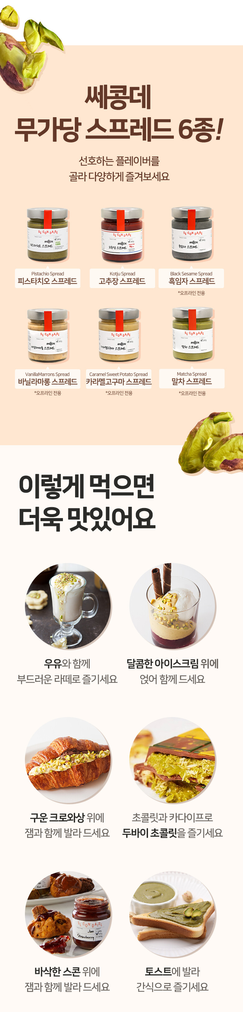 피스타치오 100% 로 꾸덕하고 고소하게 씹히는 식감! 피스타치오의 깊고 진한 풍미를 느껴보세요.