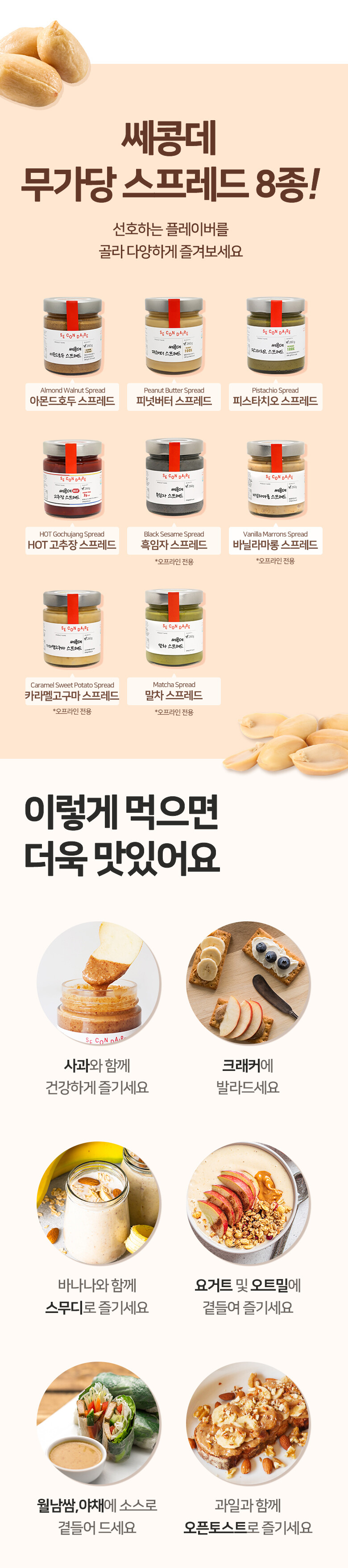 아몬드와 호두의 특별한 조합! 100% 의 꾸덕한 제형속에 본연의 고소한 단맛과 풍미를 느껴보세요.